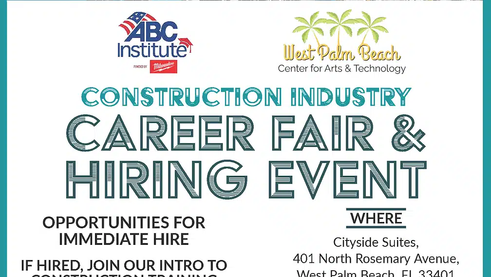 Come to our career fair and hiring event in West Palm Beach! We will be inviting a variety of people from the area and will promote trades in the construction industry.